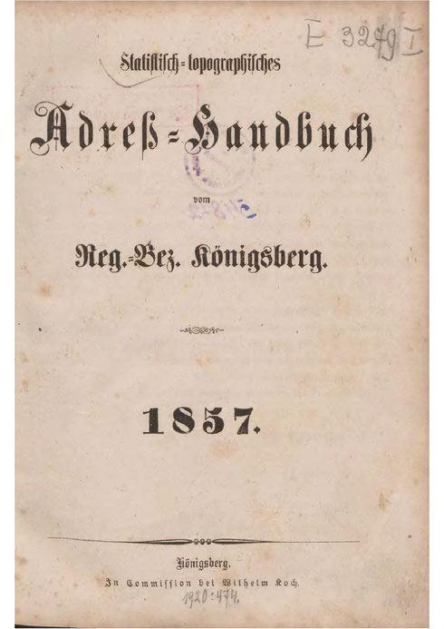 Statistisch topographisches Adreß-Handbuch vom Reg.-Bez. Königsberg, 1857